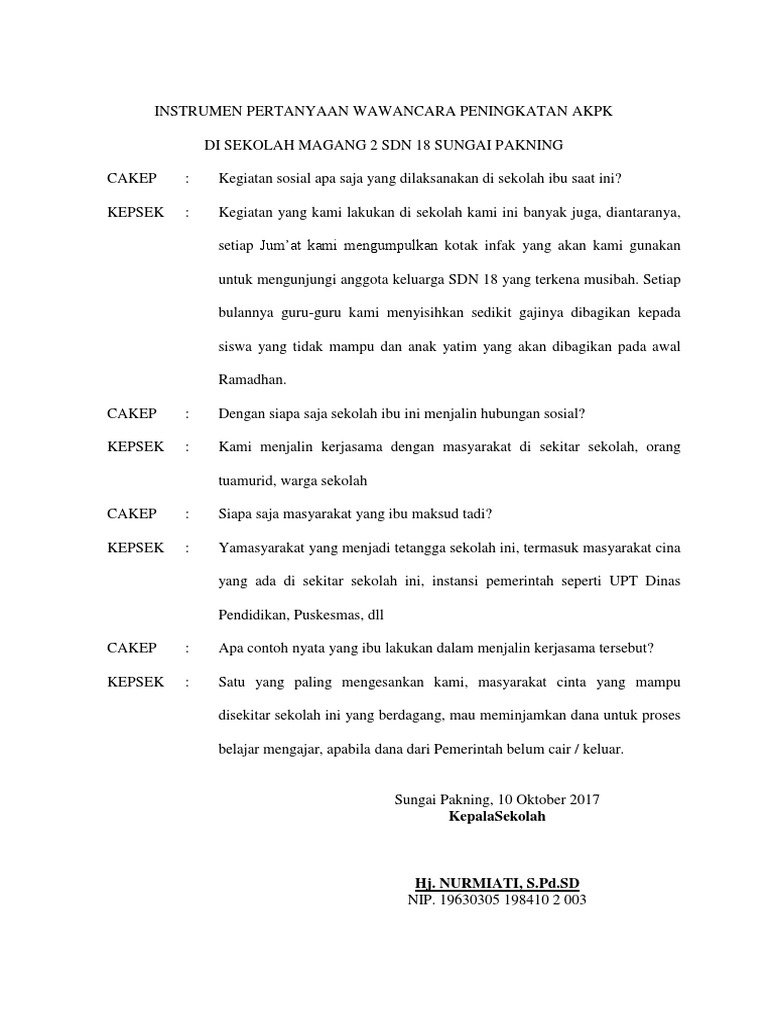 Contoh wawancara dengan kepala sekolah. Check spelling or type a new query. We did not find results for: Maybe you would like to learn more about one of these?